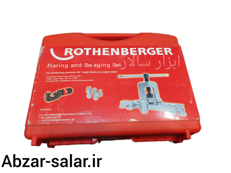 در ابزار سالار، ما به شما کیت کامل پرچ و گشاد کن لوله **روتنبرگر** (Flaring و Swaging) را معرفی میکنیم، یک ابزار با کیفیت بالا که از آلمان به دست شما میرسد. این محصول جهت استفاده در **HVAC** و **صنایع یخچالی و کولر گازی** برای پرچ کردن (Flaring)، گشاد کردن (Swaging)، و برش لولهها طراحی شده است.
