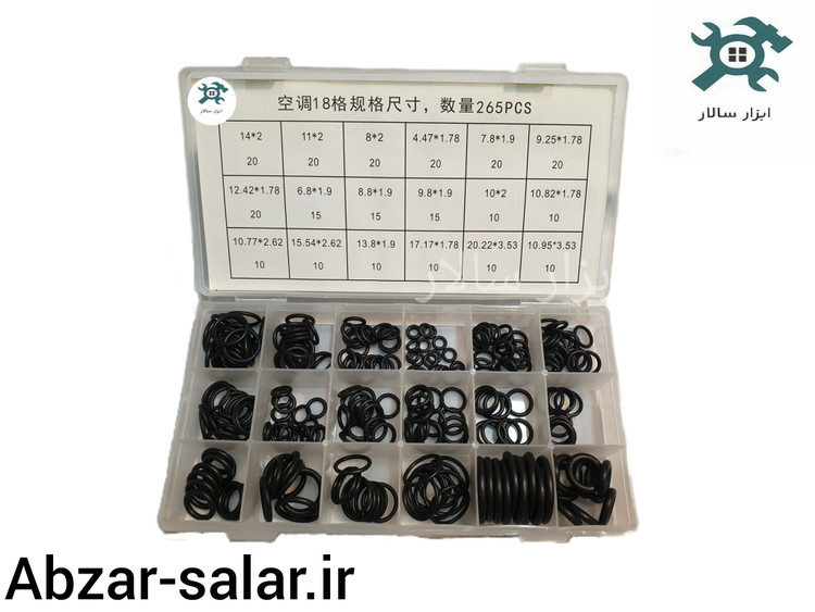 * تنوع بینظیر: این جعبه شامل 265 عدد اورینگ در 18 سایز مختلف است که تمامی نیازهای شما را در تعمیرات کولر خودرو برطرف میکند. (سایزها و تعداد هر سایز به وضوح روی درب جعبه قابل مشاهده است)