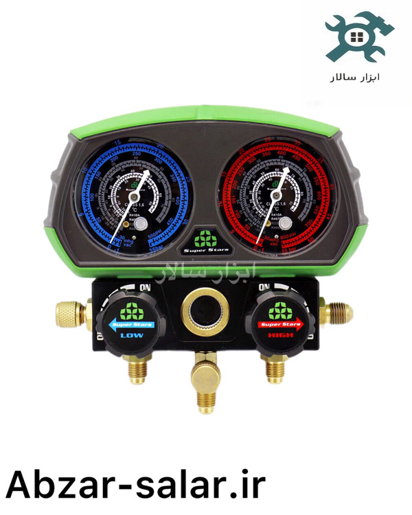 🔹 منیفولد گیج دوصفحهای Superstars – انتخابی اقتصادی با امکانات کامل برای سرویس سیستمهای برودتی