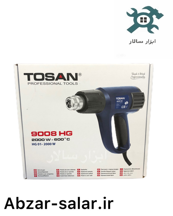 برند TOSAN با وجود تولید در چین، یکی از برندهای قابلاعتماد در بازار ابزار ایران محسوب میشود. مدل 9008 HG یک سشوار صنعتی قدرتمند با توان 2000 وات و دمای خروجی تا 600 درجه سانتیگراد است که برای کاربردهای متنوعی مثل نرمکردن لولهها، باز کردن چسبها، خشککردن رنگ، خمکاری پلاستیک و قالبگیری حرارتی طراحی شده.