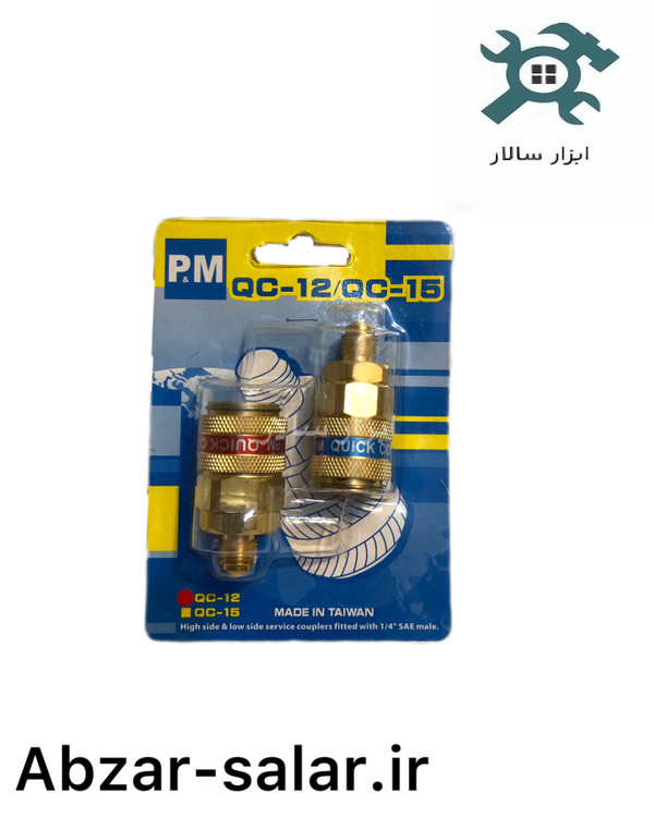 --🔧 ست کوپلر دوتایی مدل QC-12 از برند P&M تایوان – اتصال سریع برای فشار بالا و پایین در شارژ گاز کولر خودرو