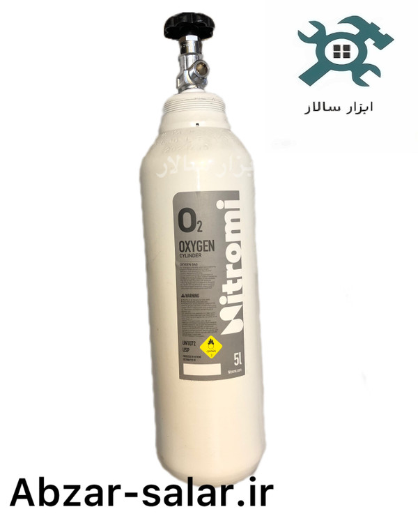 • کپسول اکسیژن صنعتی ۵ لیتری NITROMIL: مناسب برای عملیات جوشکاری، با استاندارد UN1072 و شیر کنترل مقاوم