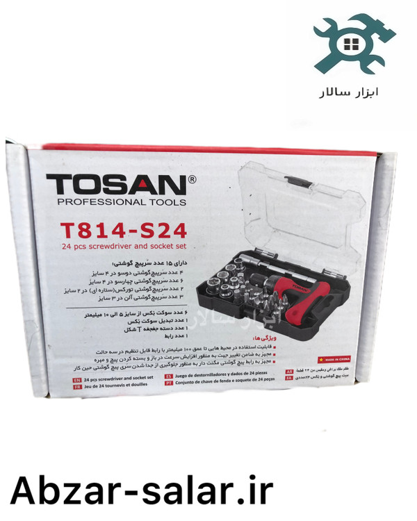 ست پیچگوشتی و بکس ۲۴ عددی TOSAN مدل T814-S24 – مجموعهای کاربردی و قابل حمل برای تعمیرات خانگی، صنعتی و تأسیساتی