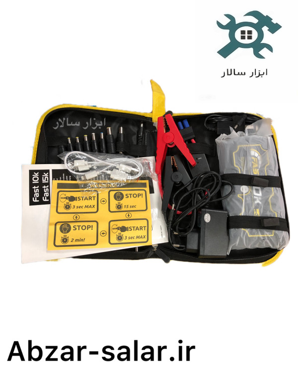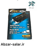 جامپ استارتر FAST 10K EV – دستگاه چندمنظوره لیتیومی برای راهاندازی خودرو، شارژ ابزارها و تأمین انرژی در شرایط اضطراری، با قدرت 1300 آمپر و خروجیهای USB و DC