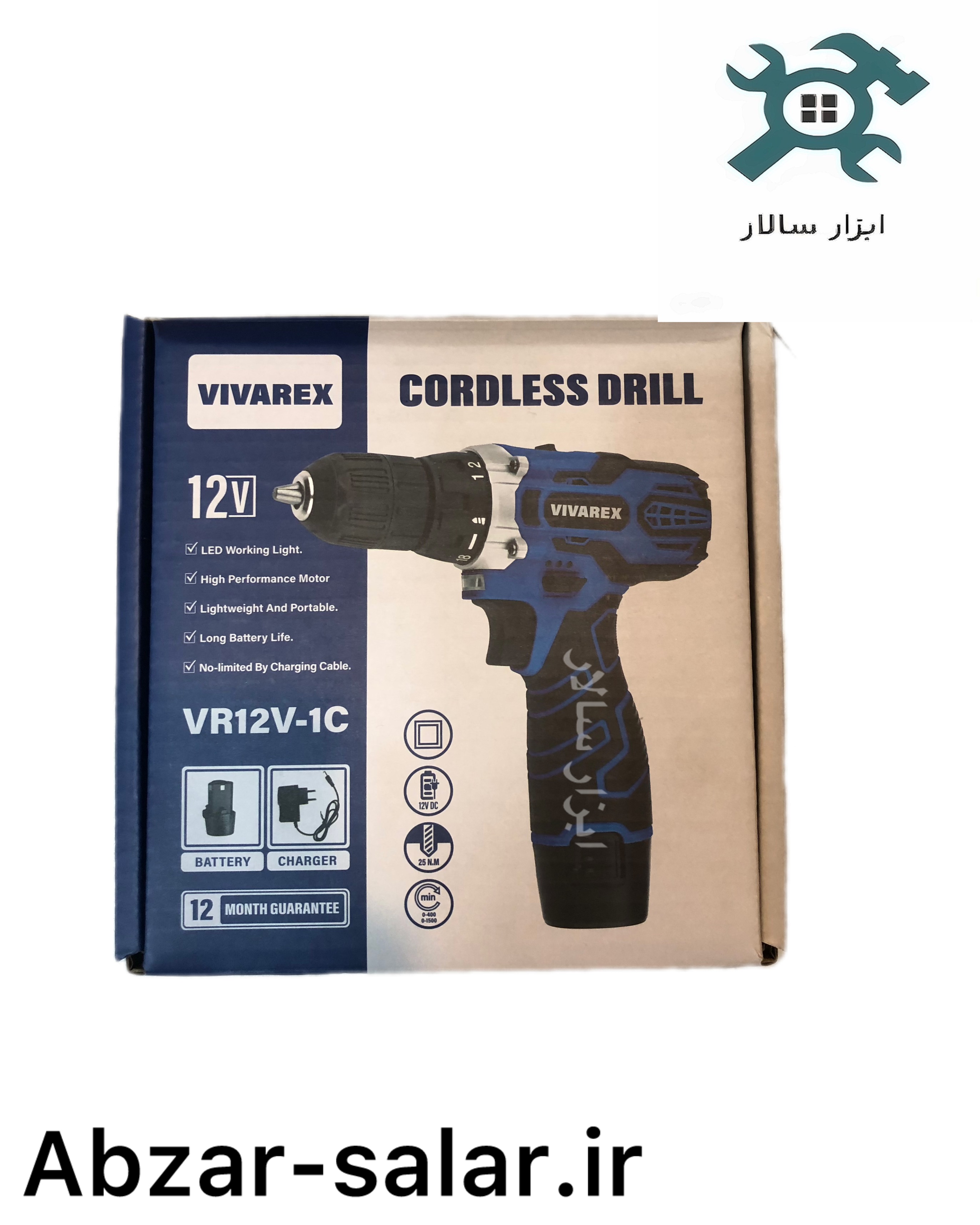 دریل شارژی 12 ولت برند VIVAREX – سبک، قدرتمند و مجهز به گارانتی یکساله برای پیچکاری و سوراخکاری حرفهای