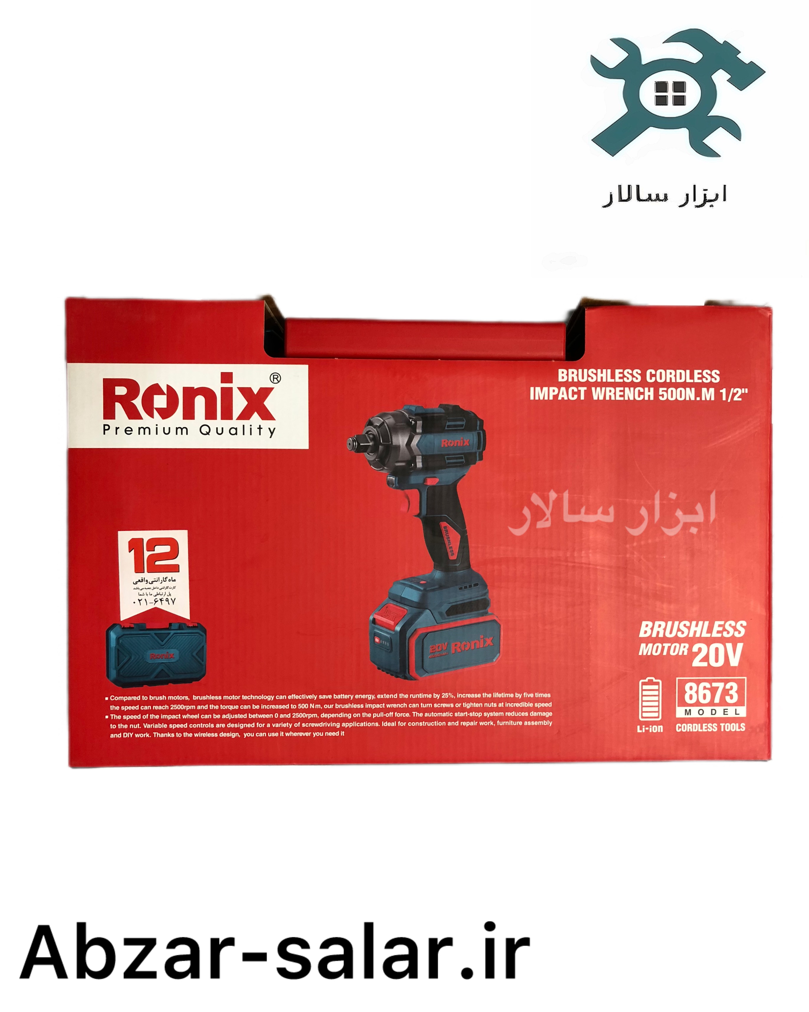 آچار بکس ضربهای شارژی Ronix – موتور براشلس، گشتاور 500 نیوتنمتر، ساخت تایوان